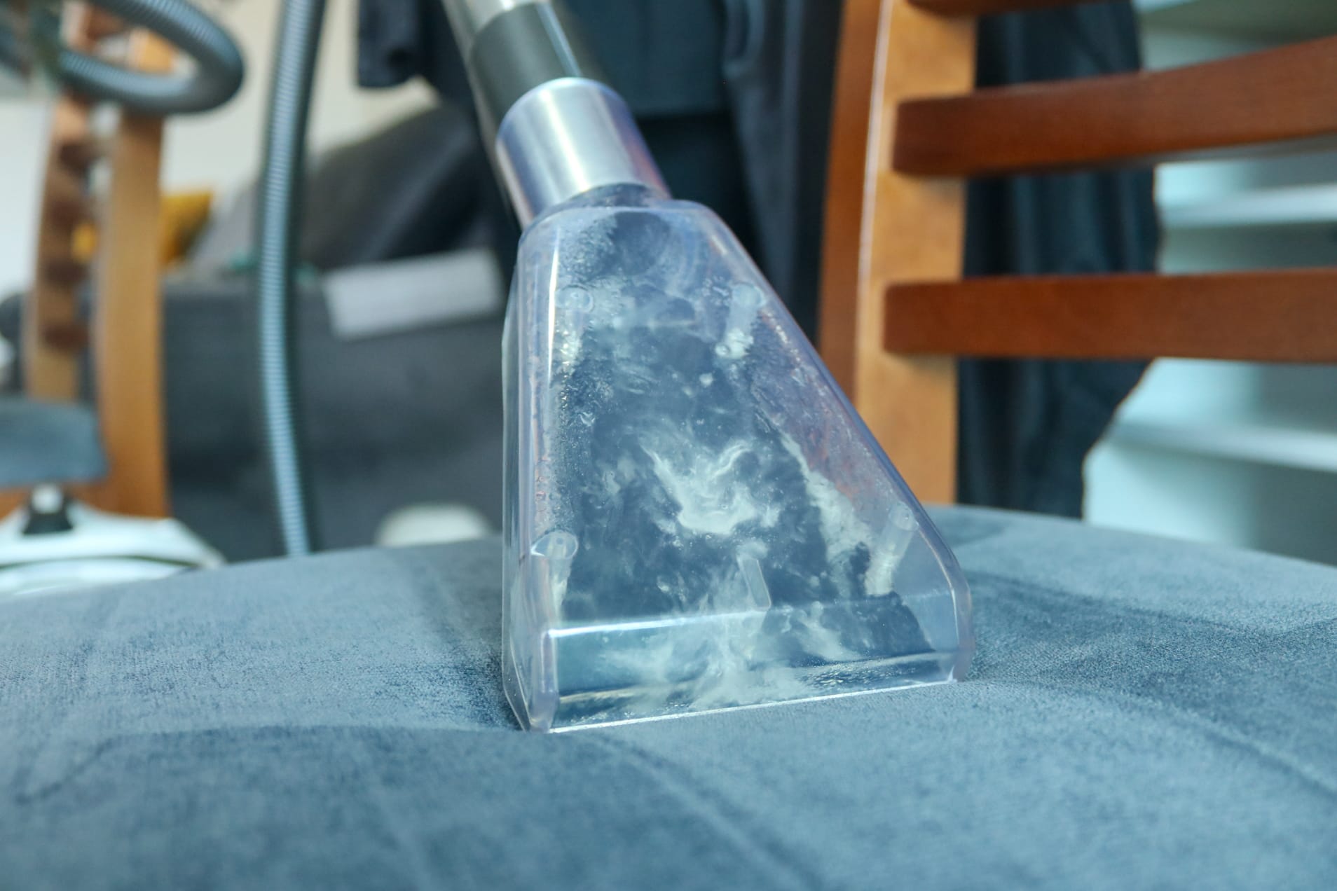 O Kit de Extração de Manchas SEK eleva significativamente a capacidade de limpeza profissional do Vivenso Smartcleaner ao permitir uma remoção mais profunda e eficiente de manchas e sujeiras impregnadas, tornando uma extratora de sujeira totalmente eficiente para higienizar o ambiente. O Kit utiliza um sistema de extração inteligente que aplica o Agente de Limpeza diretamente sobre as manchas, soltando-as das fibras do tecido. Em seguida, com o uso de bocais específicos, o Kit SEK extrai as manchas e a sujeira, deixando as superfícies profundamente limpas. Este processo não é apenas superficial, mas penetra nas camadas mais profundas dos tecidos, removendo sujeiras que técnicas de limpeza convencionais não conseguem alcançar. Assim, o Kit SEK é essencial para quem deseja uma limpeza verdadeiramente profunda, especialmente em áreas mais suscetíveis à manchas persistentes, garantindo que seu ambiente doméstico permaneça impecável e higienizado.